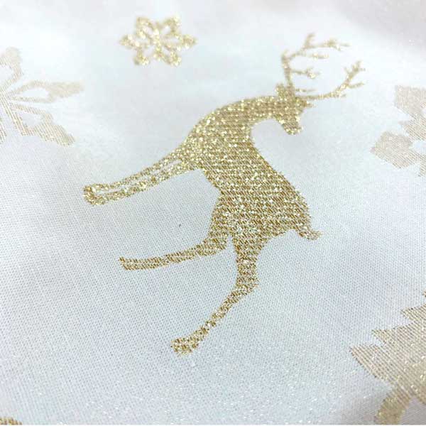 Color: Tela Blanca con bordado plateado “Renos Bordados con Copos“